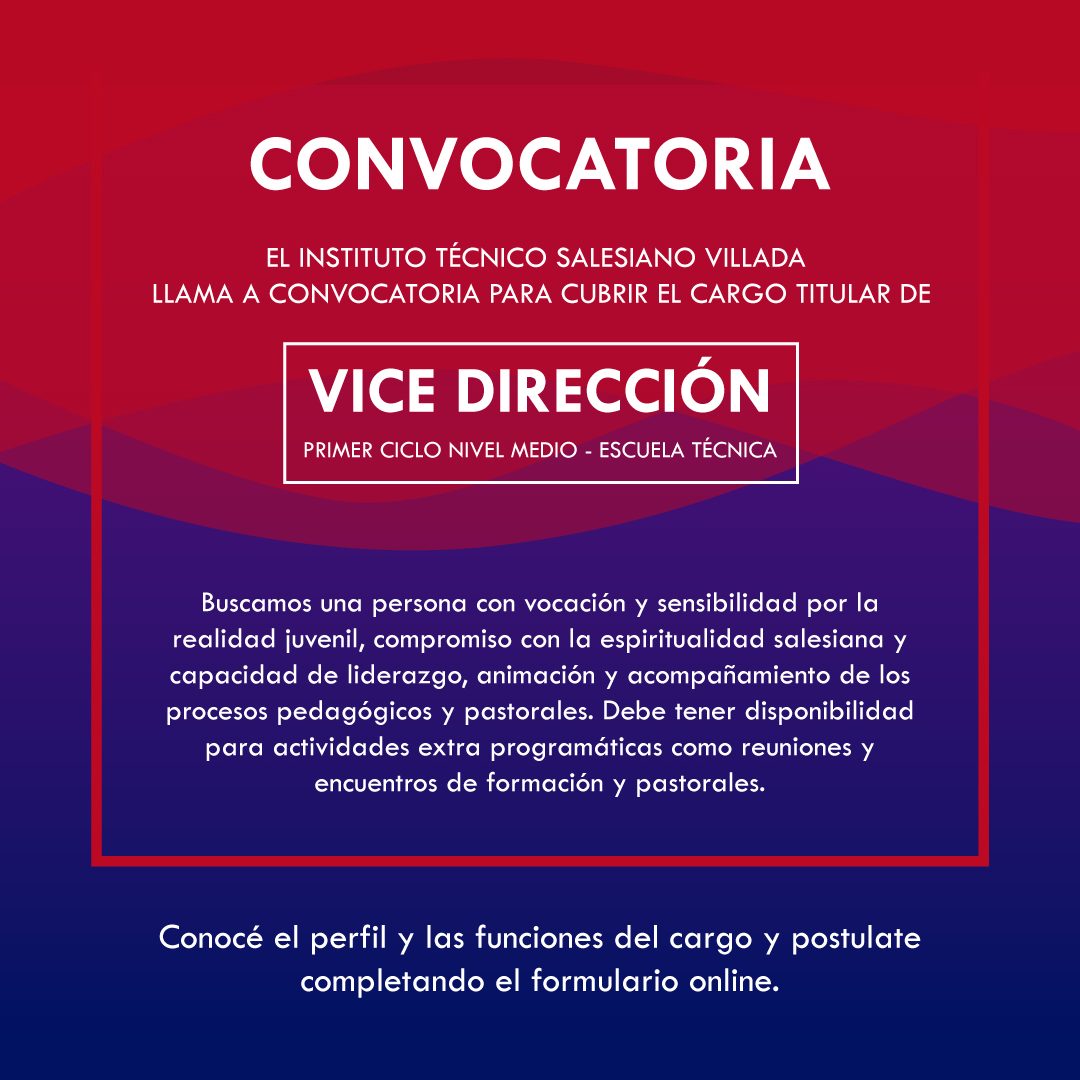 El Instituto Técnico Salesiano Villada abre la búsqueda para el cargo titular de Vice Director/a de Primer Ciclo.